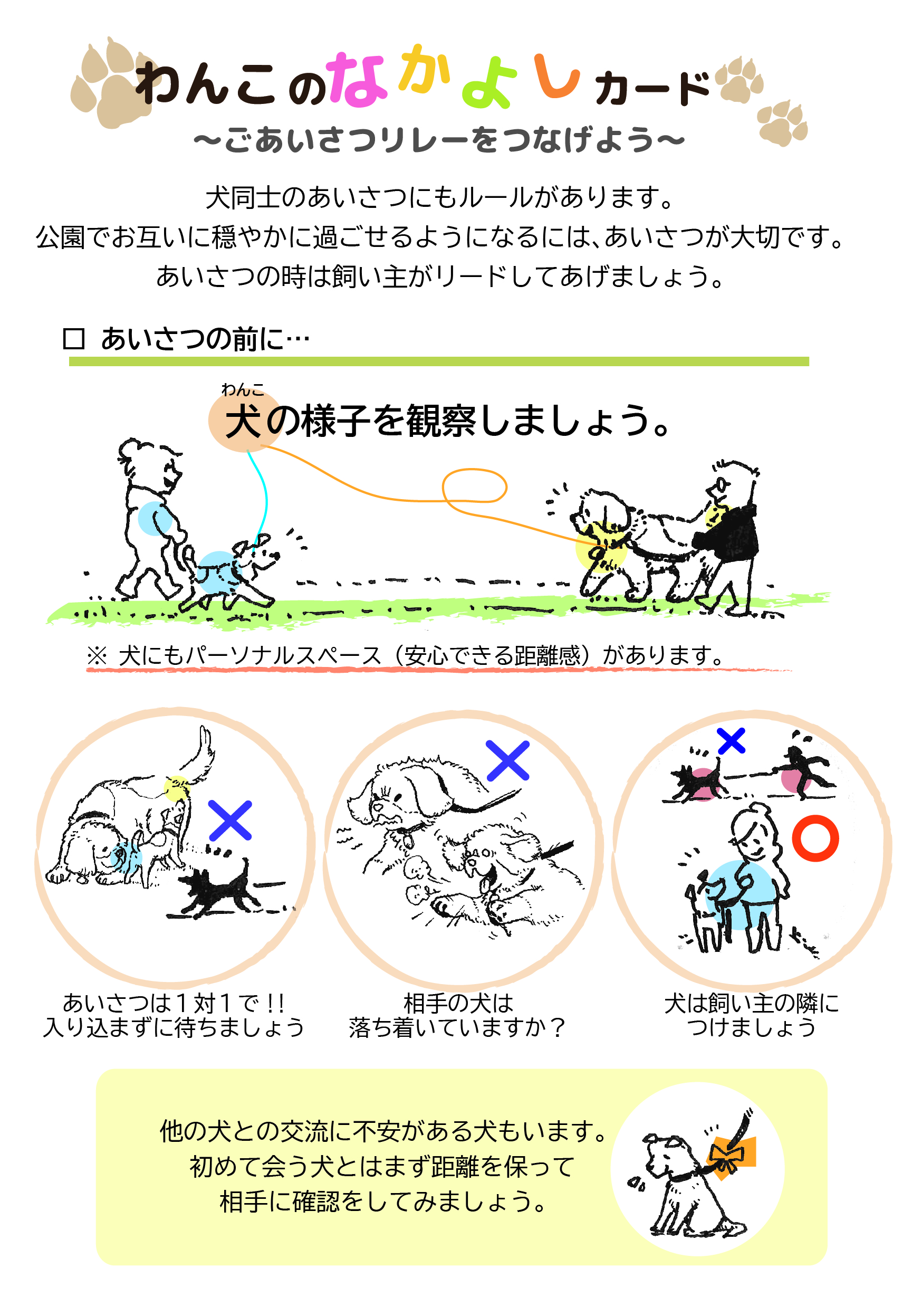 ※ご参加の際は、事前に下の「なかよしカード」でわんこ同士のご挨拶や飼い主さんとのやり取りの仕方をご確認下さい。