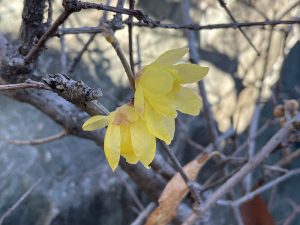 こちら名前に梅とつきますが、別の種類の「ロウバイ(蝋梅)」です。黄色い花がぱっと目を引きます。