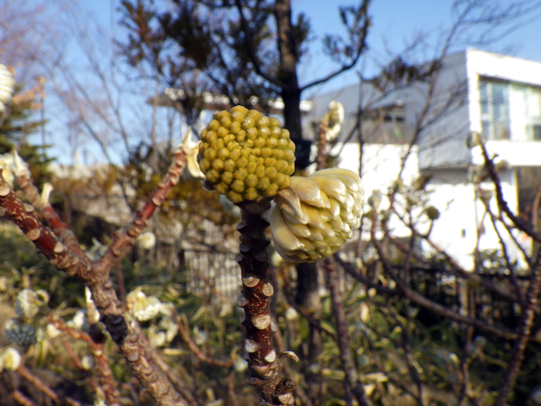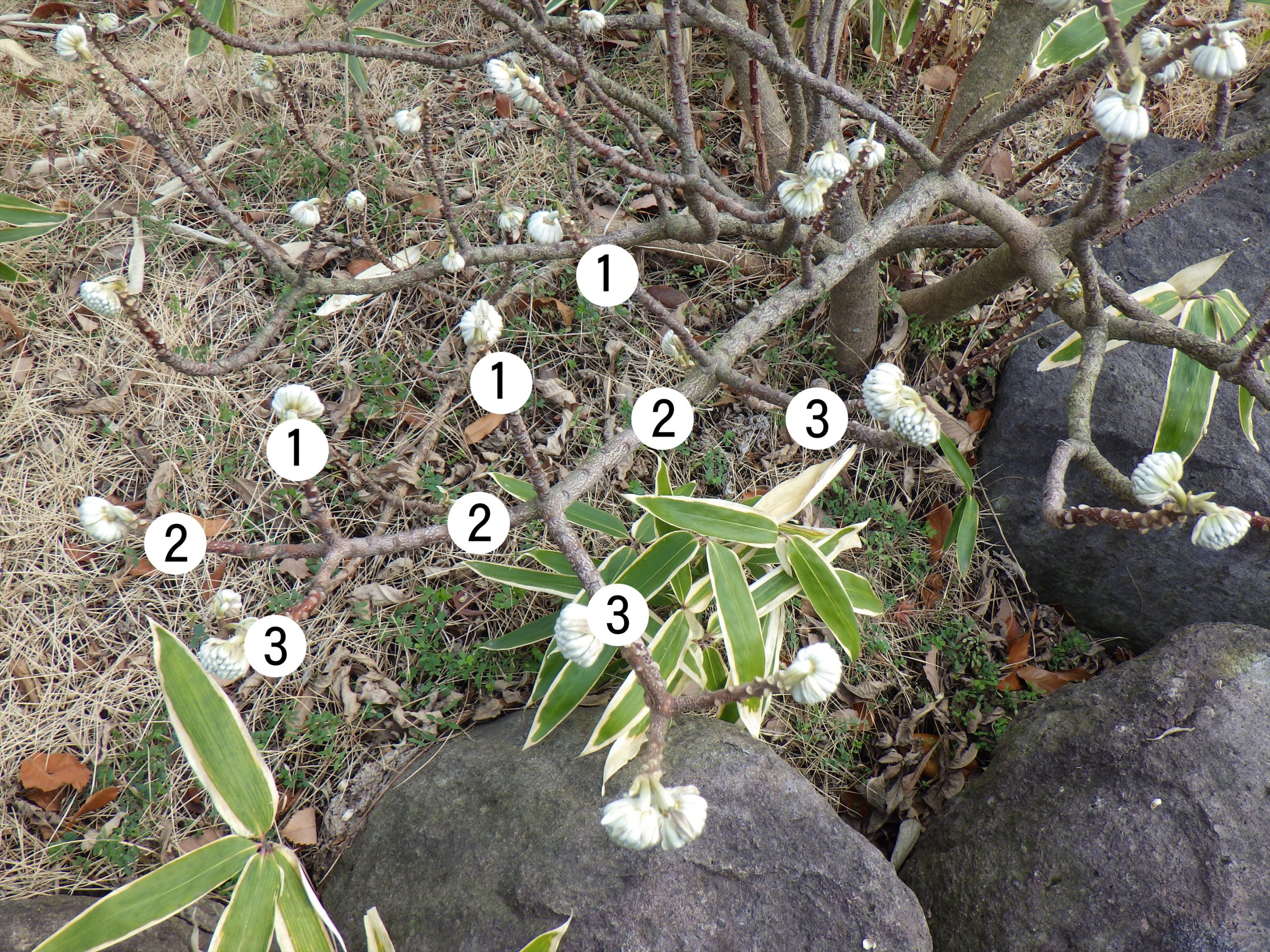 漢字ではタイトルの通り「三椏」と書き、「椏」は木の枝が分かれている場所を表す漢字なので、「三つに枝分かれした」という意味の名前になります。