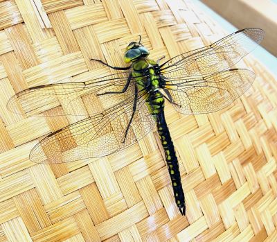 日本庭園「帰真園」で羽化し、うまく翅がのばせていないところを
