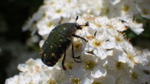 【コアオハナムグリ】は白いお花が好きなので、朝でも十数匹とんでいるのが見られました!