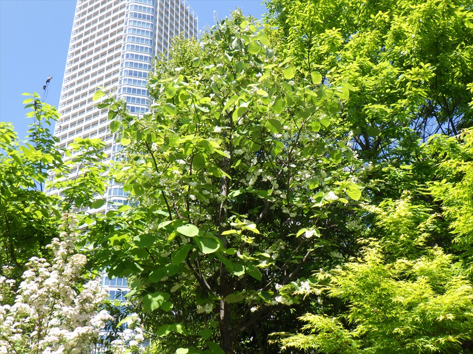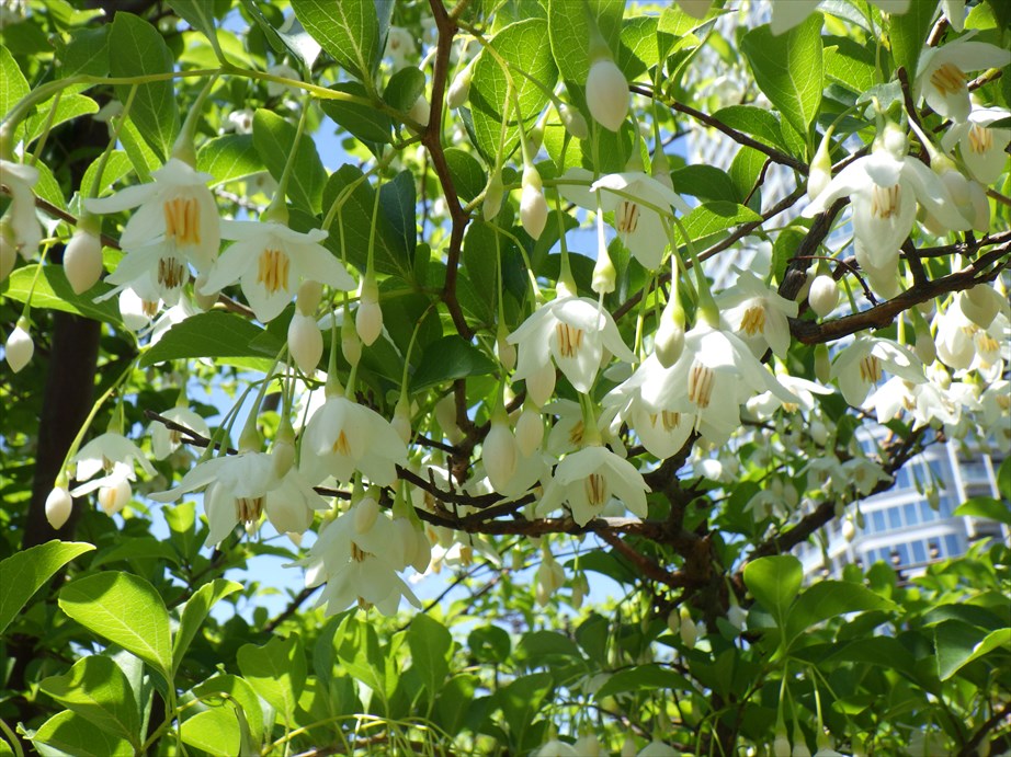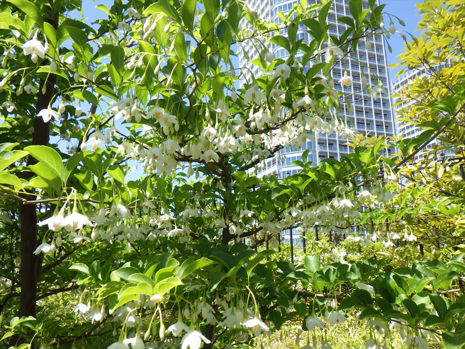 白い花が垂れ下がり咲くのはエゴノキと同じですが、