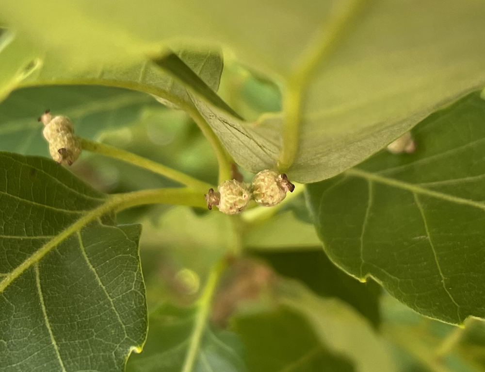 秋に楽しめる四角い薄紅色の実も魅力的です。