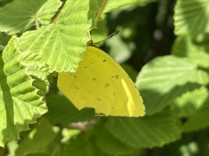 キタキチョウが葉っぱのかげでひとやすみ。