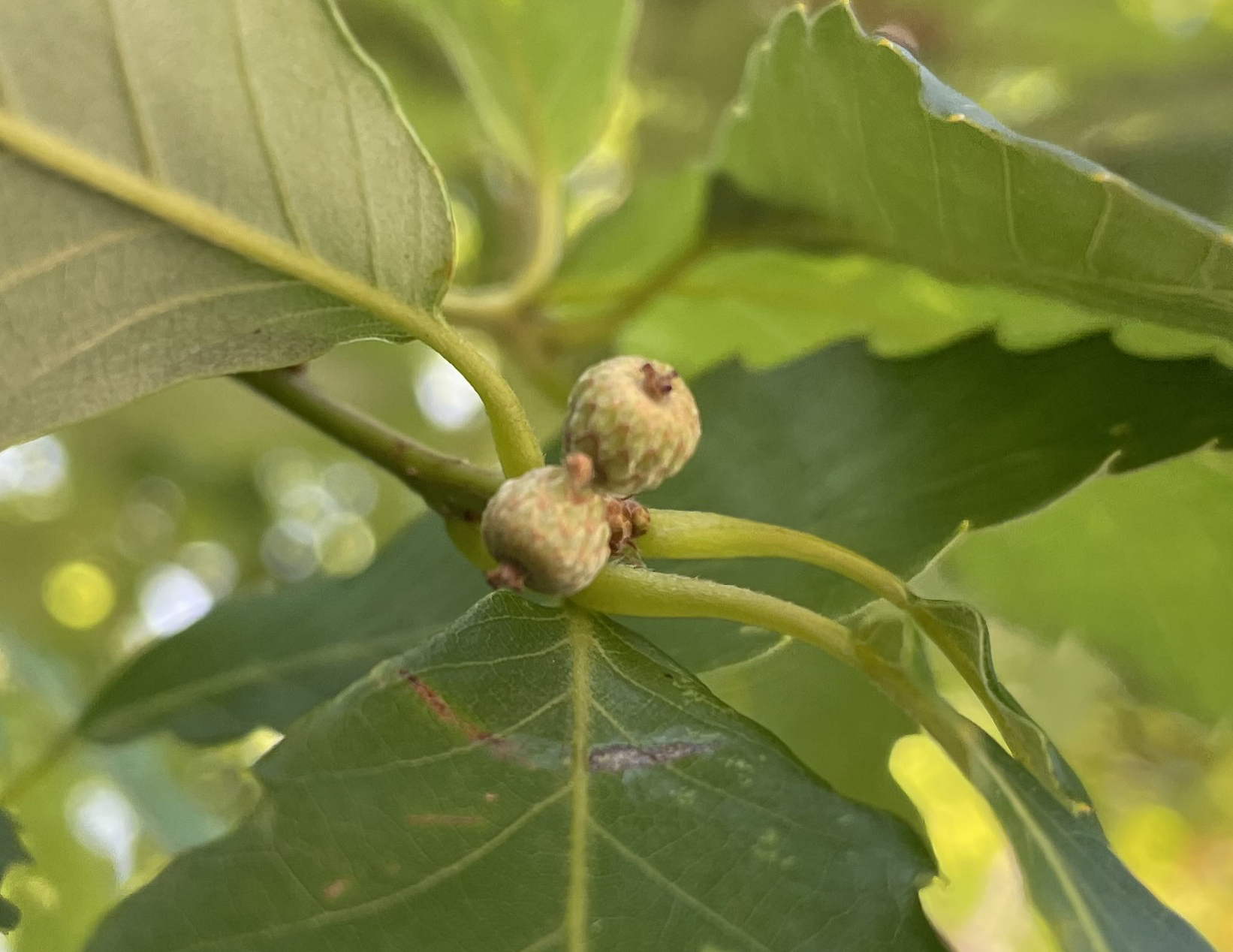 こちらはドングリの仲間コナラの赤ちゃん(小さな実)。まだ「ぼうし」だけですね。大きくなるのを観察中です。