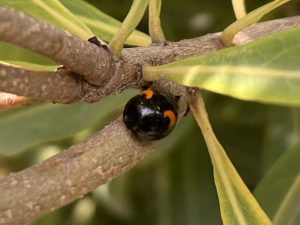 あ、ナミテントウみつけた!黒地に赤いもようが遠目にも映えますね。