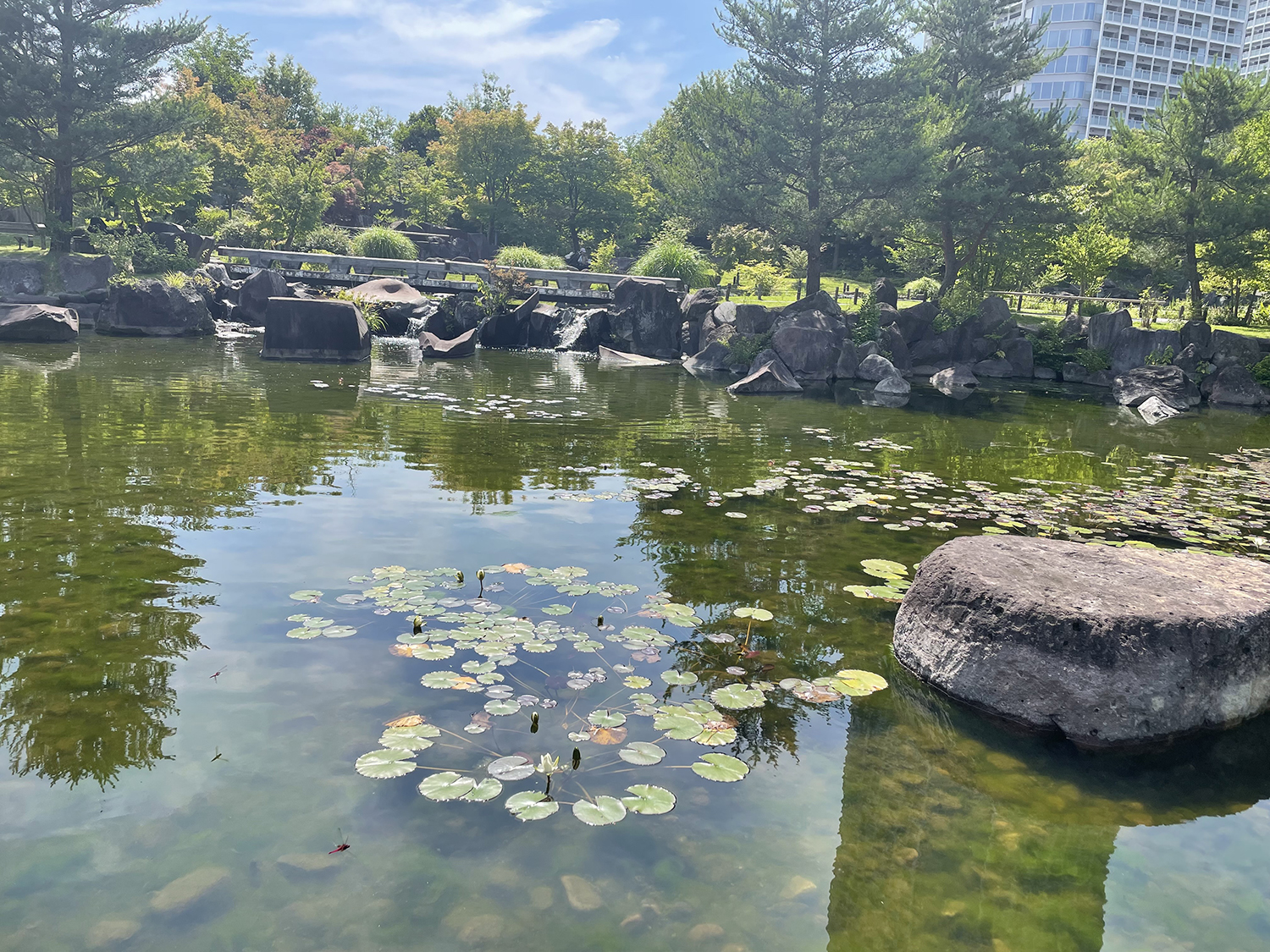 最後に帰真園の池で涼を感じてお散歩の締めとしました。