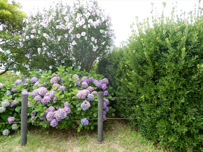 写真に写っているのは、花の大きいムクゲと紫色のアジサイじゃないか!と、思いましたか?