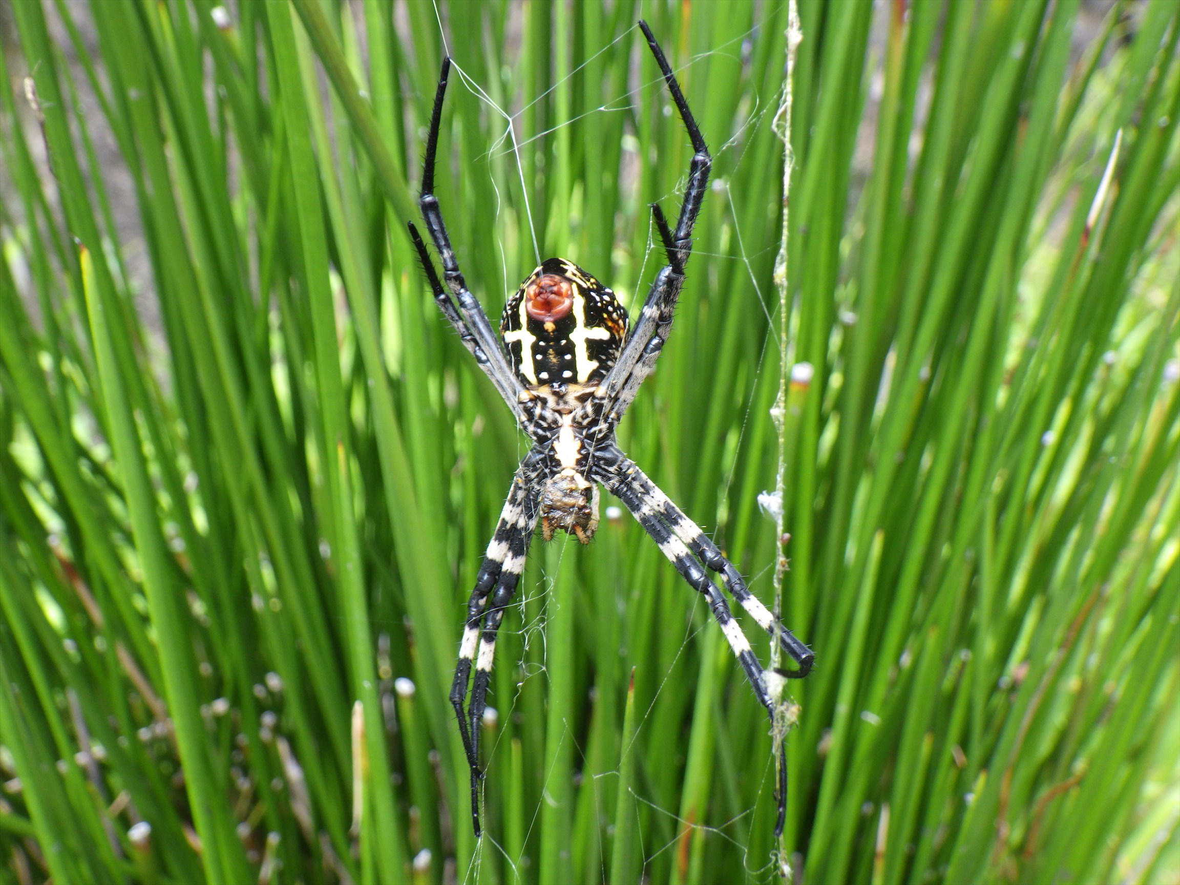 旧清水邸の近くにあるイグサに「コガネグモ」のメスを見つけました!