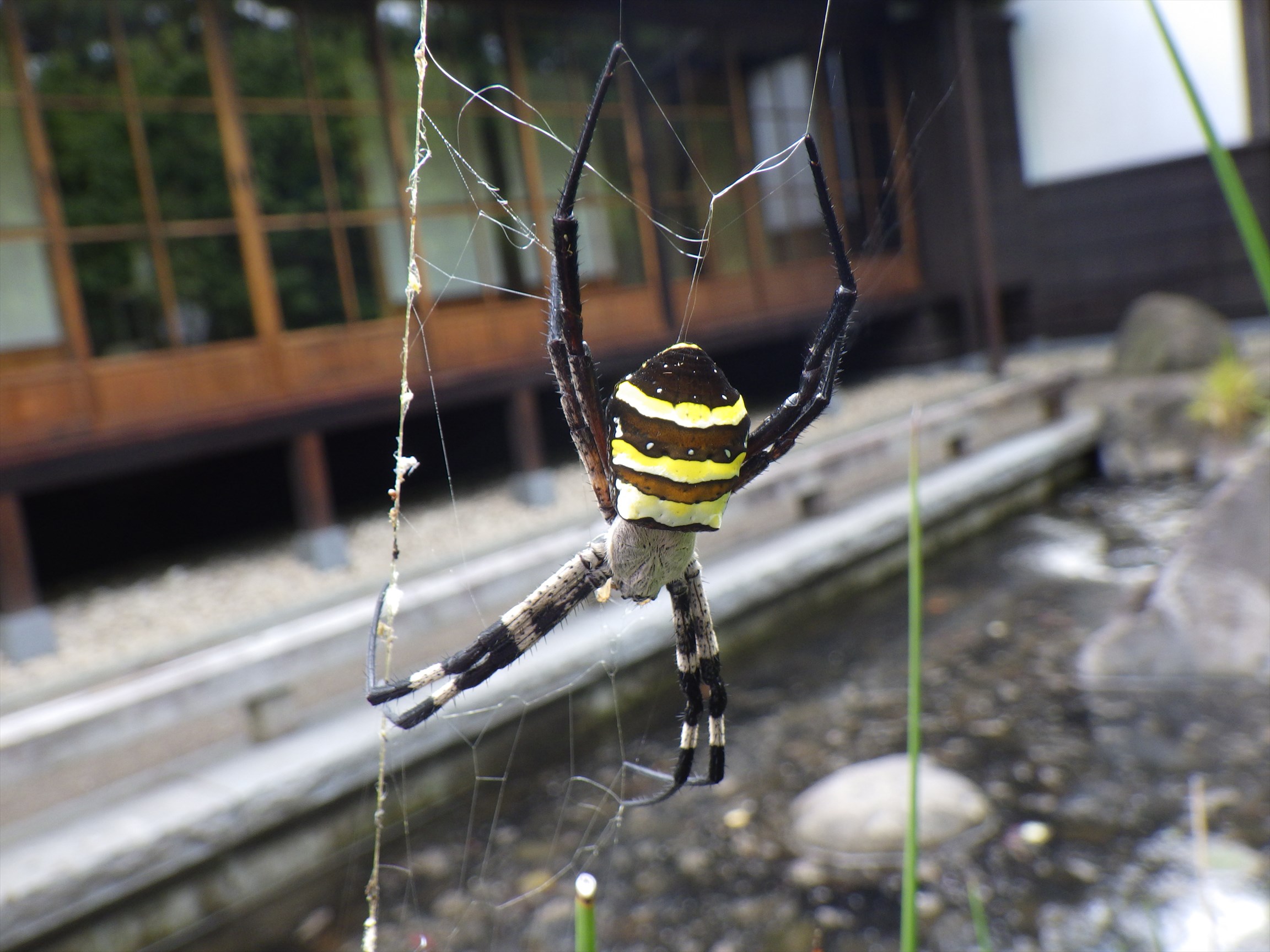 帰真園内では以前も違う場所に巣をはっているコガネグモを見かけたことがありますが
