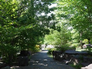 園内は樹々が日差しをさえぎってくれ、思いの外暑さは感じず楽しく歩くことができました。帽子と飲み物を持って、朝の帰真園散歩にいらしてくださいね。(みほねえ)