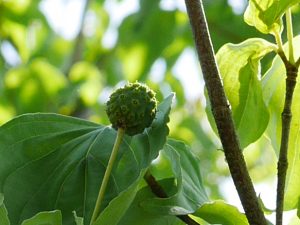 丸がたくさん集まったようなこちらの実はヤマボウシ。秋になると赤く熟します。実は鳥たちの好物、秋の葉の紅葉も美しい、一年中楽しめる木です。良かったら春夏秋冬と見てみてくださいね。