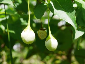 エゴノキの実がたくさんついていました。実を包んでいる皮にはサポニンという成分が含まれていて、水と一緒にシャカシャカ振ると泡が立ち、シャボン遊びもできる楽しい実です。