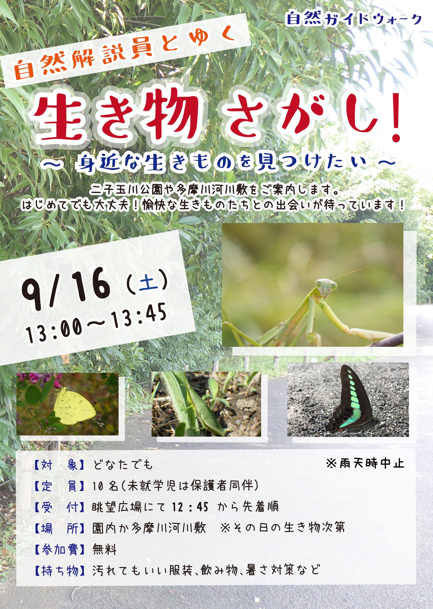 二子玉川公園や多摩川河川敷を専門のガイド(解説員)がご案内します。