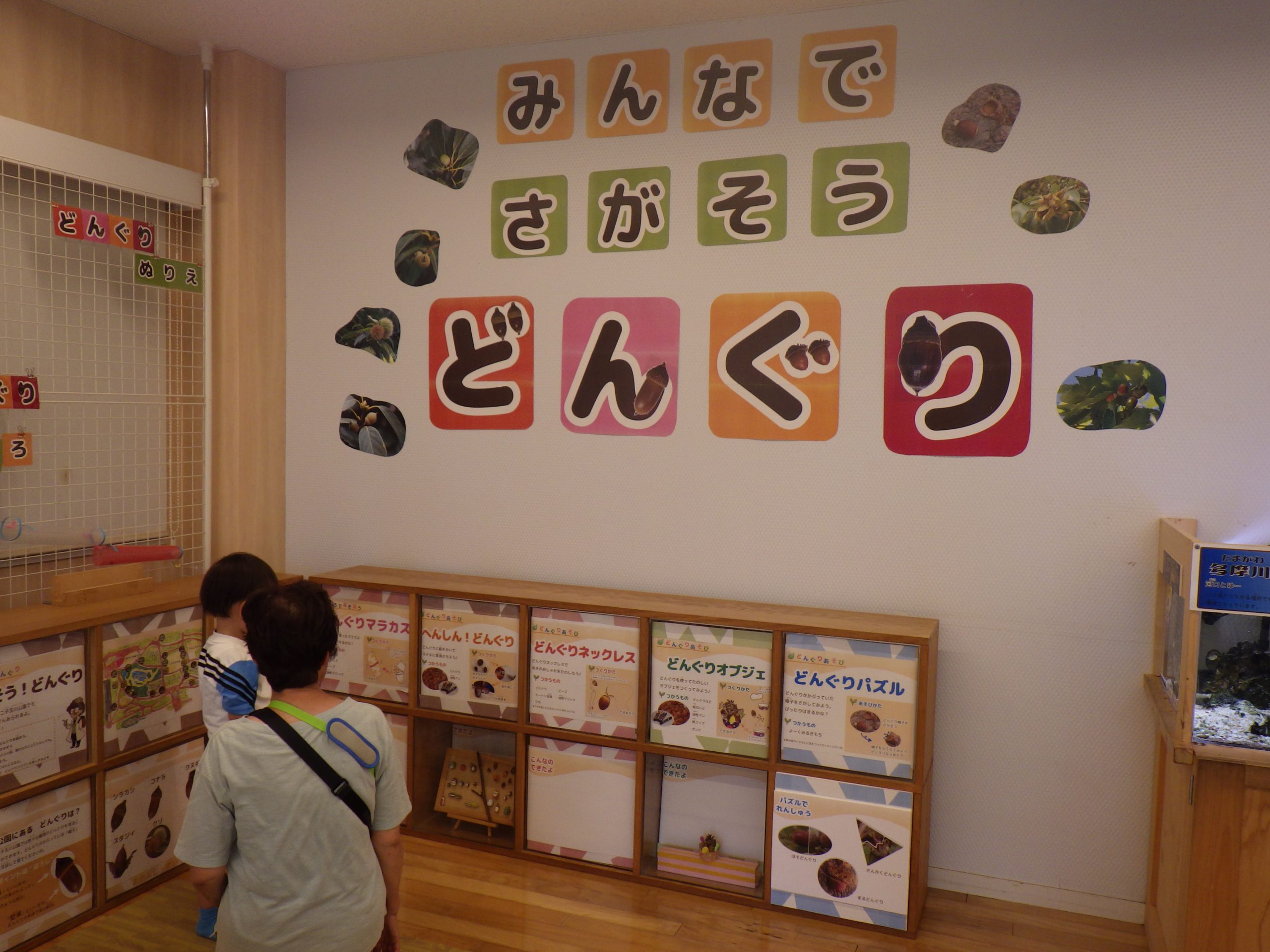ふれあい休憩室で開催中の「どんぐり展」を見に来てください!
