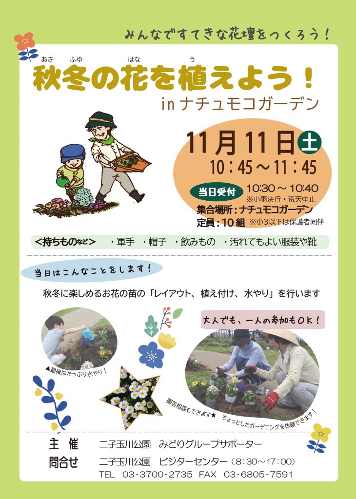 みどりグループサポーターやスタッフと一緒に秋冬に楽しめるお花を植えて、