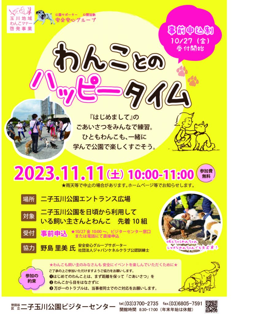 対象:二子玉川公園を日頃から利用している飼い主さんとわんこ