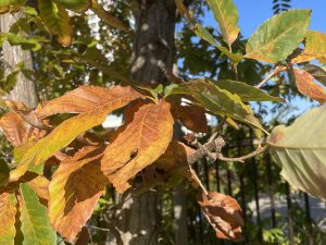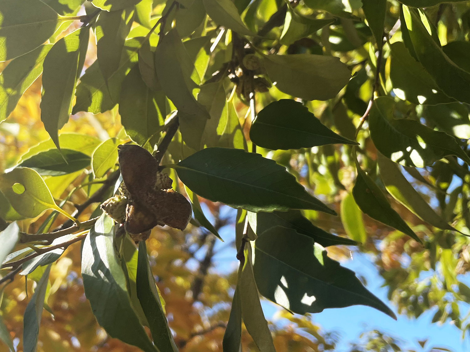 食べてもおいしいスダジイもずいぶん「ぼうし(殻斗)」が開いて、実が落ちていますが、まだすこし残っています。