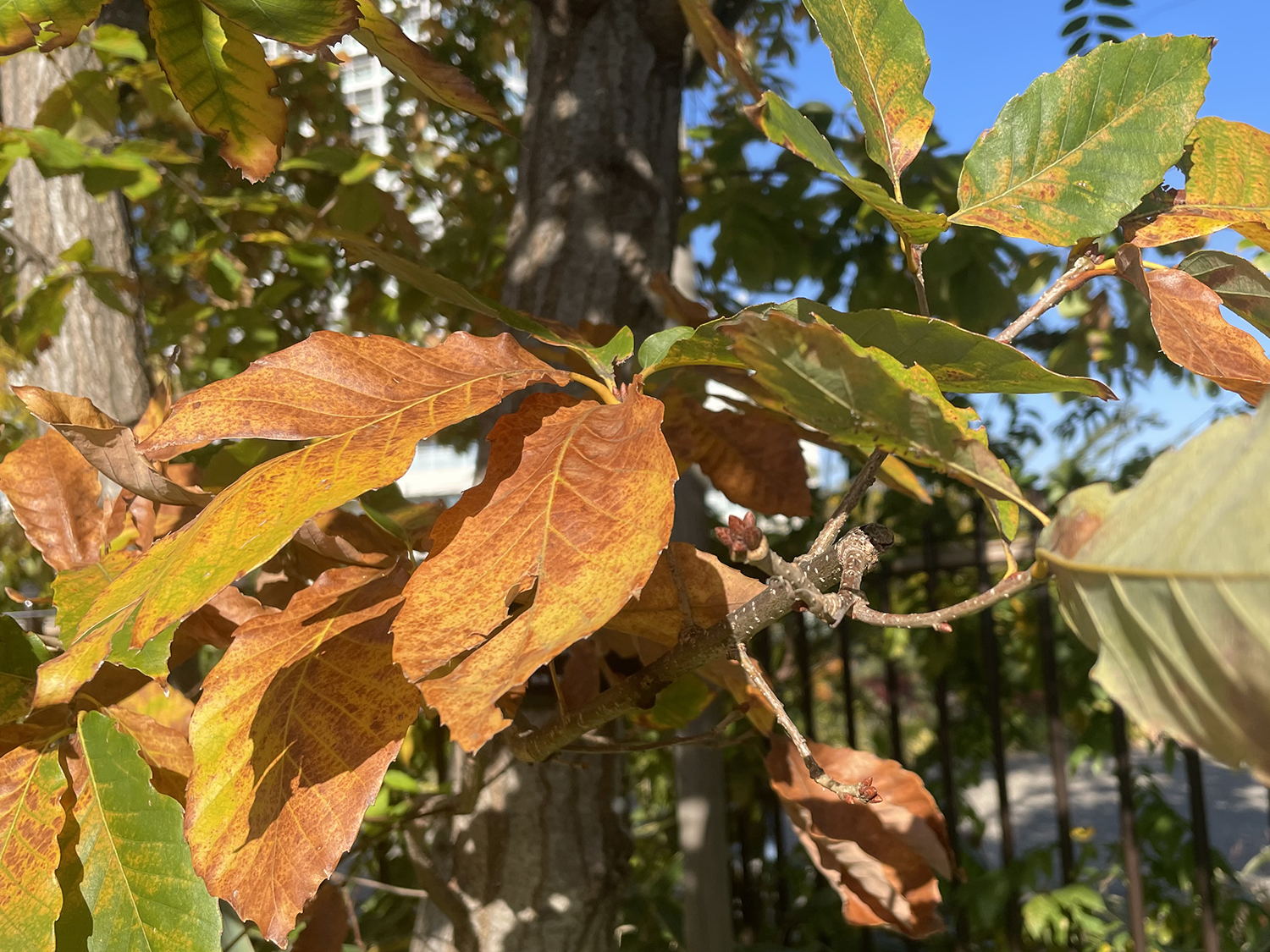 みんな大好きどんぐり「コナラ」の葉も紅葉しています。「冬芽」もついて冬じたく準備完了!です。