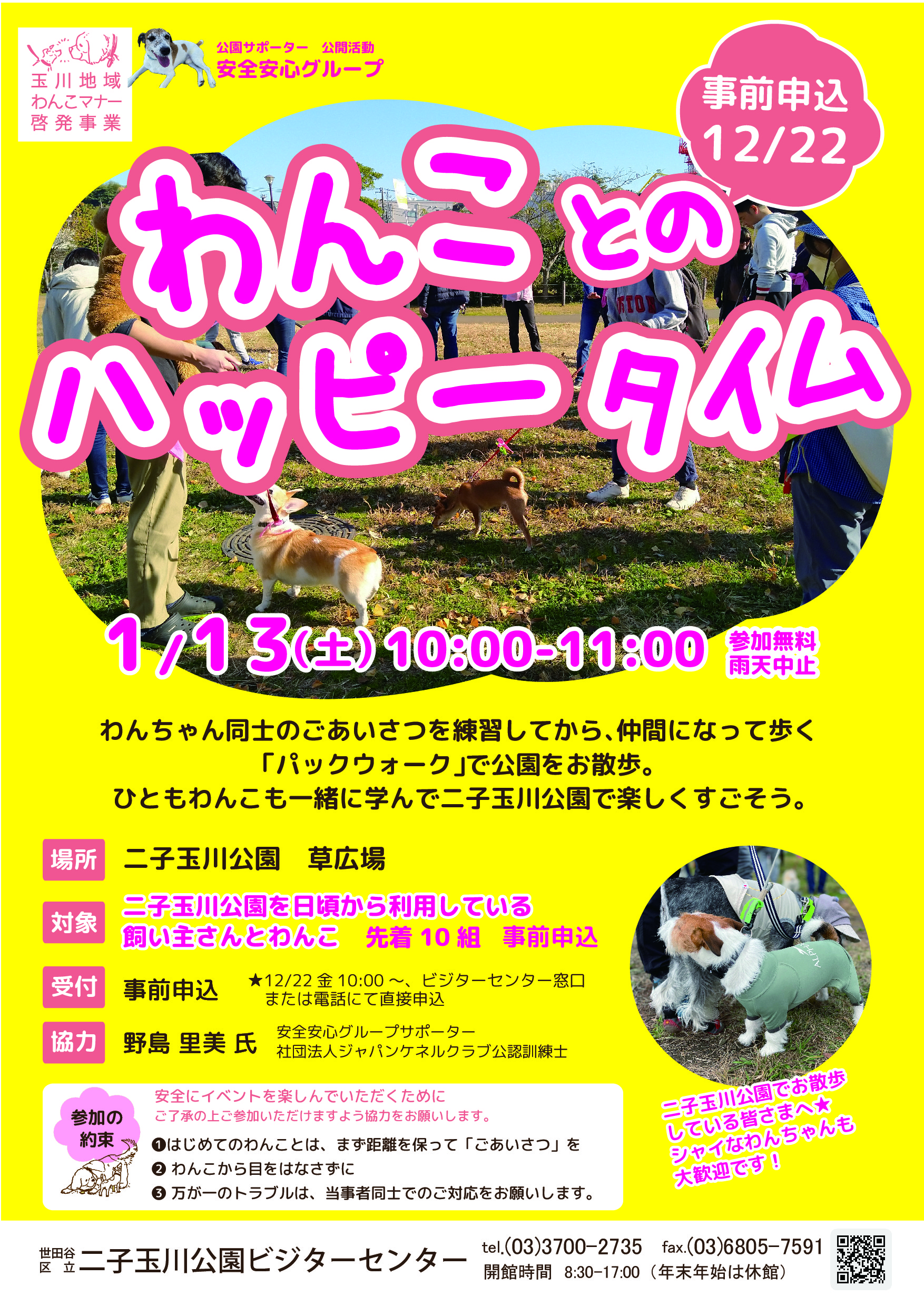 対象:二子玉川公園を日頃から利用している飼い主さんとわんこ