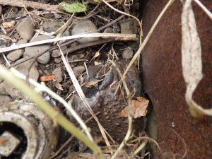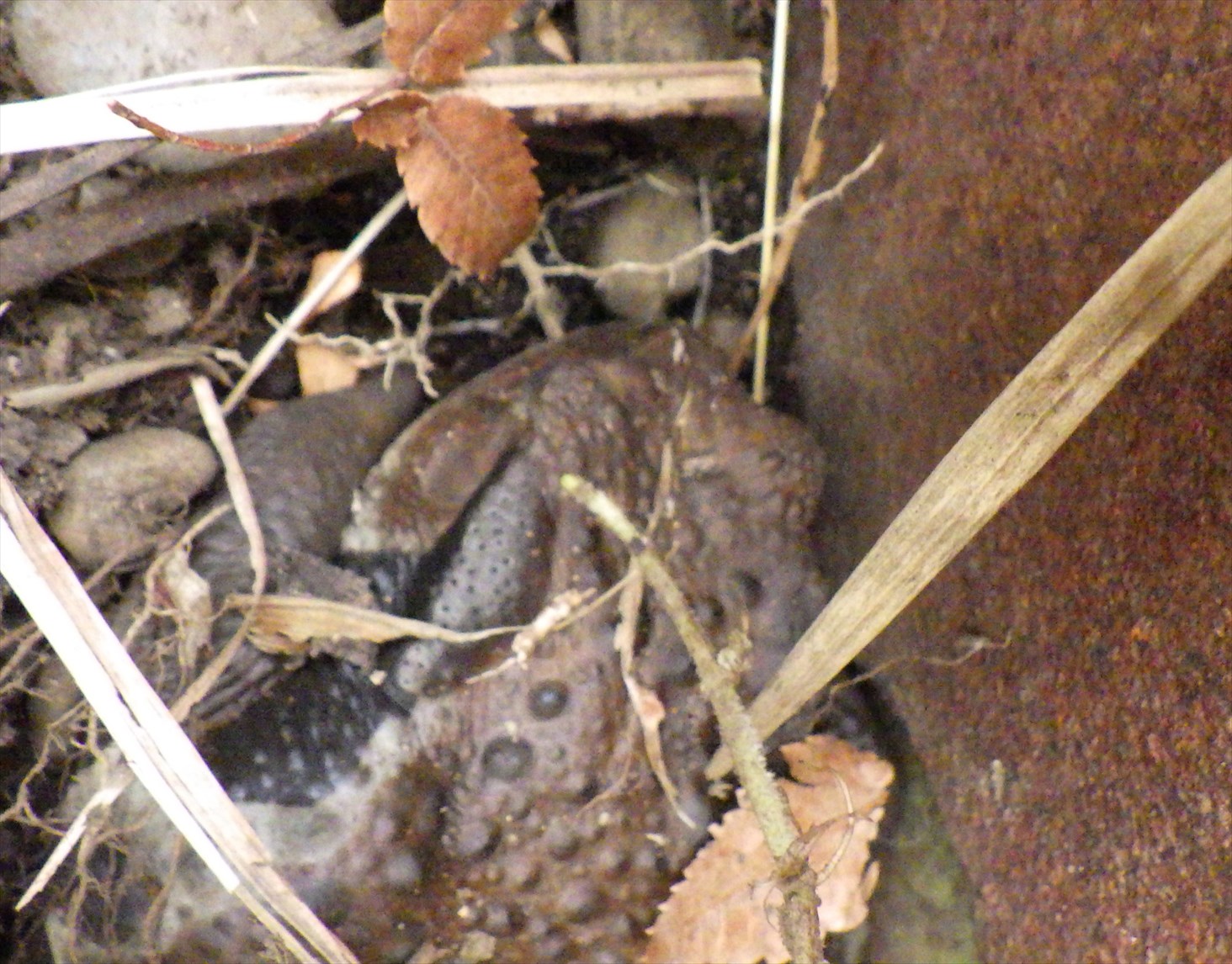 公園のとある散水栓ボックスで、ヒキガエルが冬眠していました。