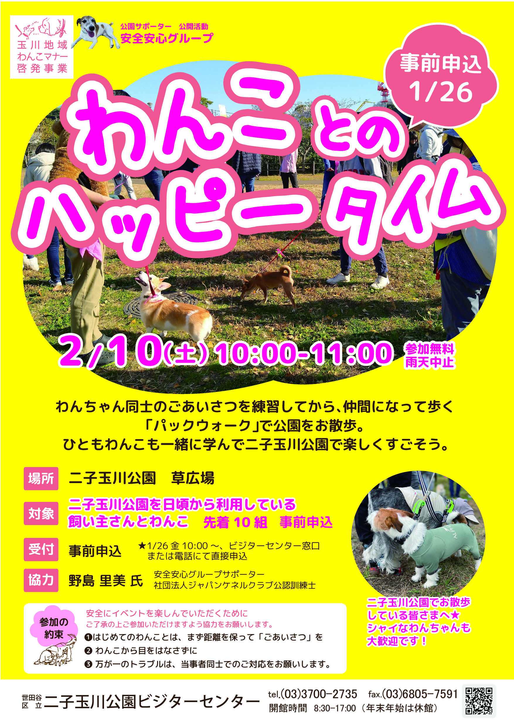 対象:二子玉川公園を日頃から利用している飼い主さんとわんこ