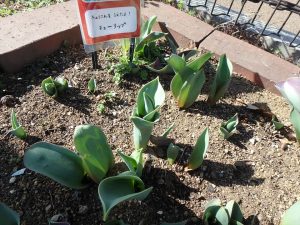 チューリップの花が咲くのはまだ先ですが、少しずつ成長しています。