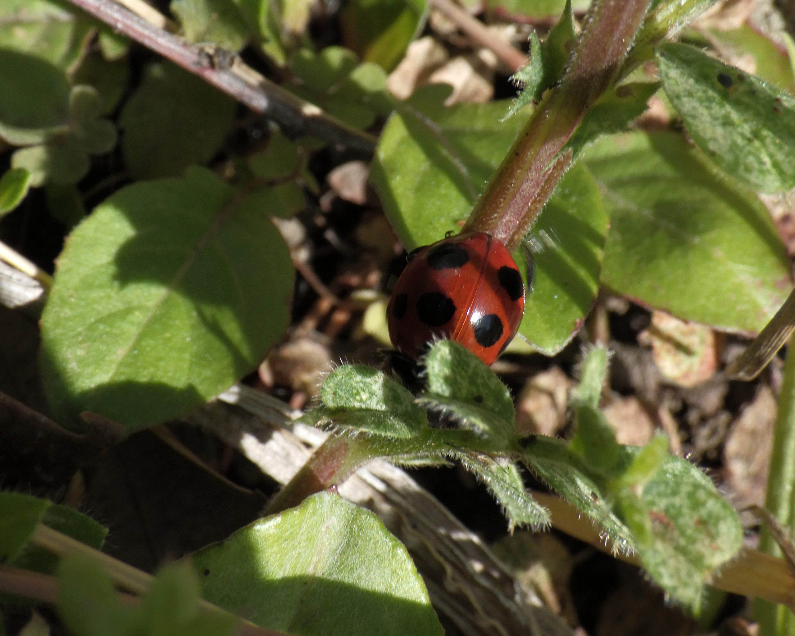 そして足元には「ナナホシテントウ」が! 寒い冬を超えて活動を始めています♪