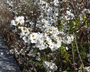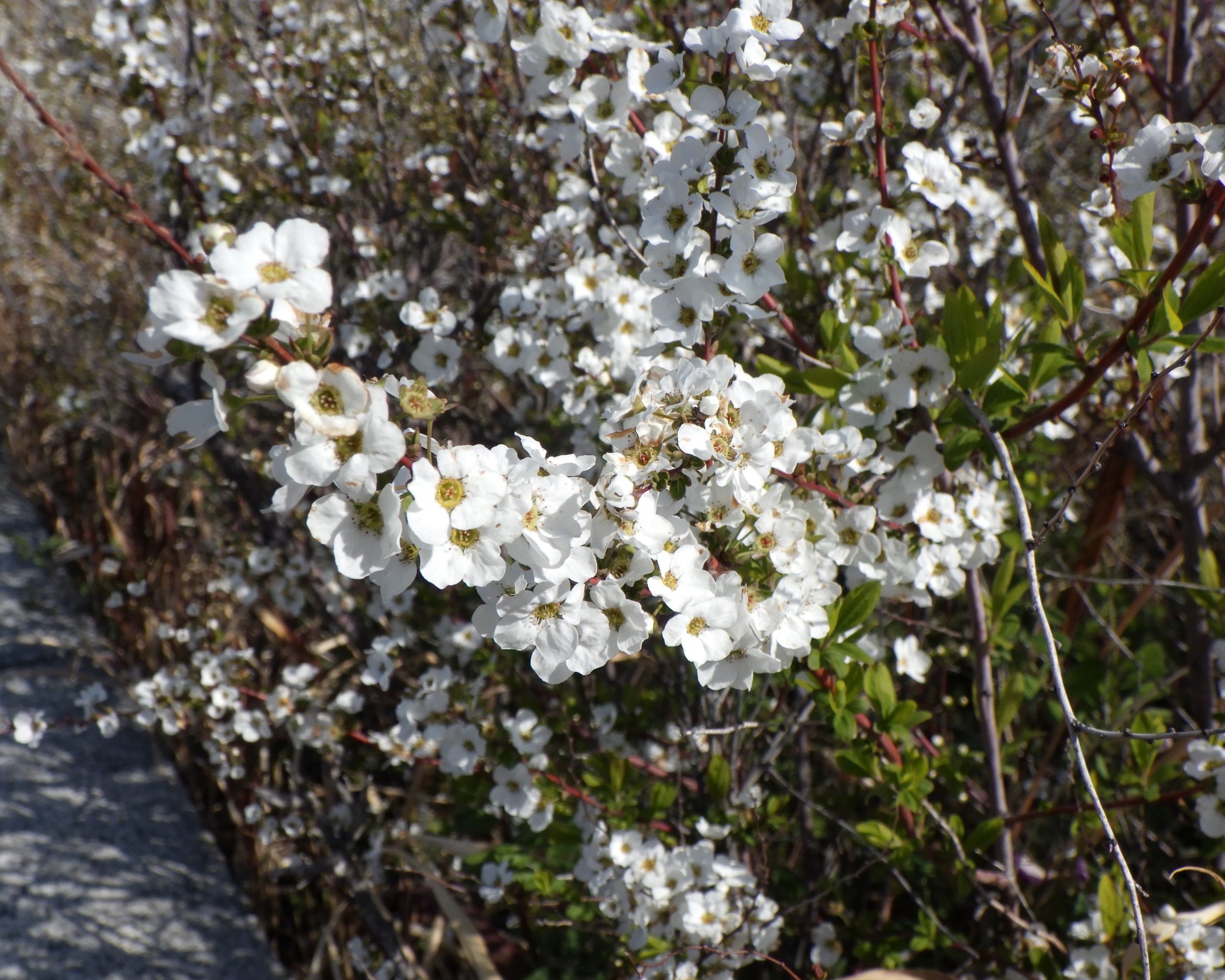 道端で現在多く見られる白い花は「ユキヤナギ」暖かくなる前から咲き始め、見ごろとなっています。