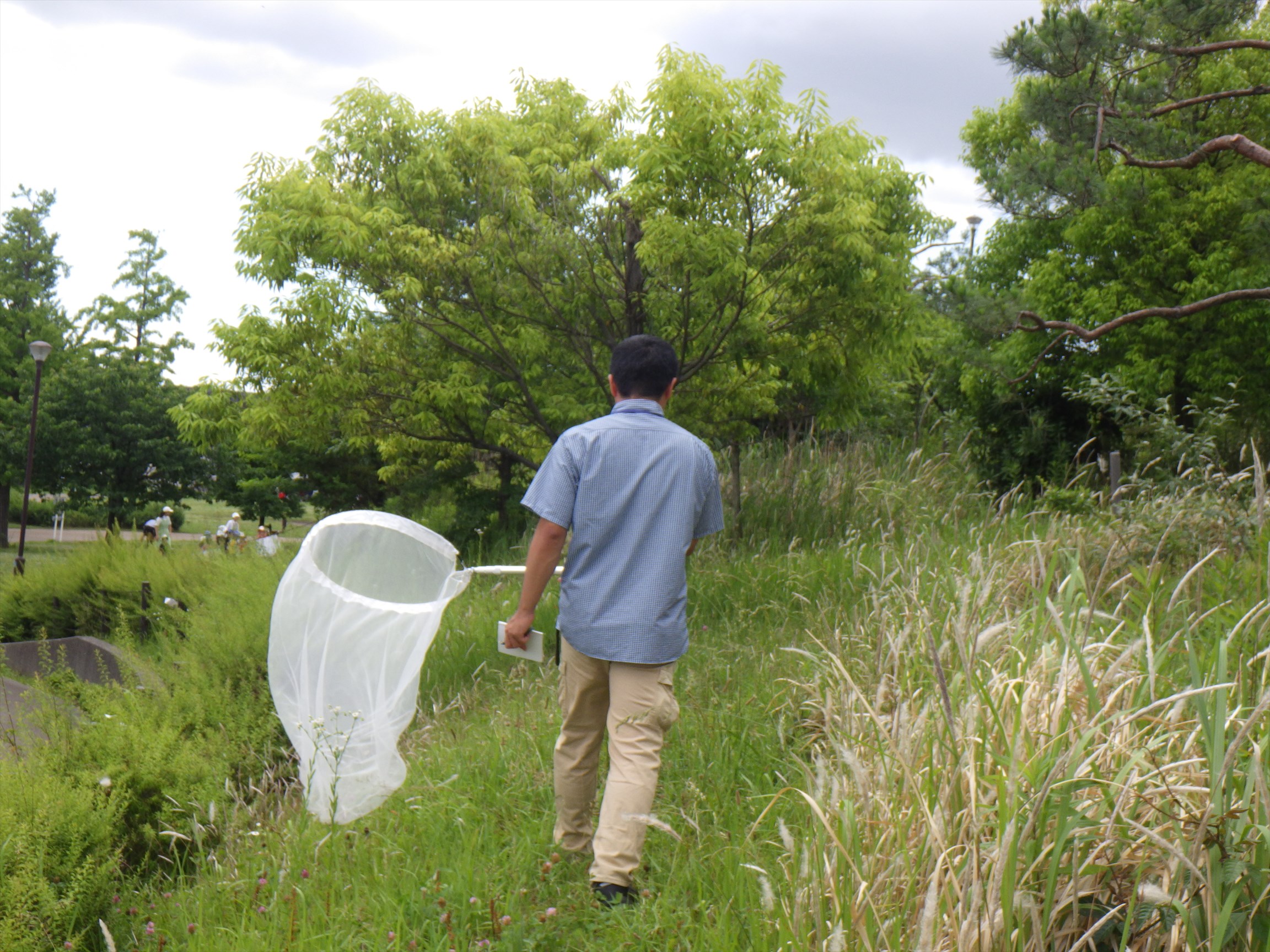 今日はスタッフの「たいしょー」とともに公園内の昆虫調査に赴きました。昆虫を眺めていればきっと気分も晴れることでしょう。