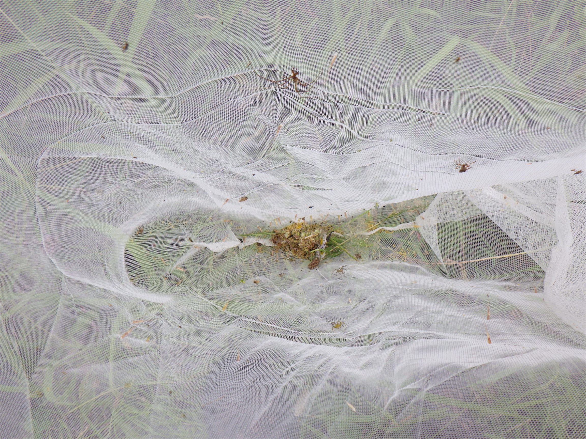 スタッフが管理しているサンクチュアリで「たいしょー」が虫捕り網を使い草を掬いながら進んでいきます。網の中を覗くとたくさんの虫が入っています!