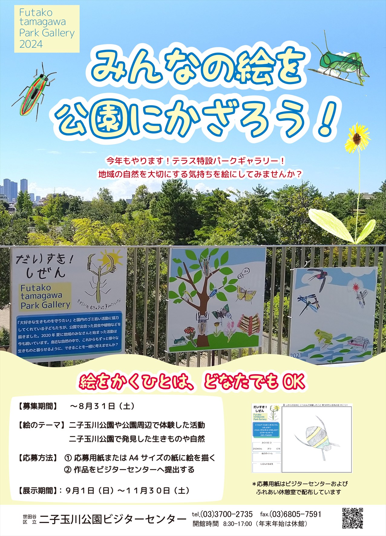 皆さんの作品を二子玉川公園ビジターセンター3階テラスに展示します!