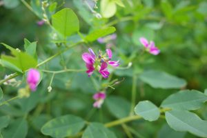 ビジターセンターから富士見台の方向に園路を歩いているとヤマハギの花が目に留まりました。虫達も集まってきています。