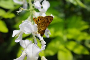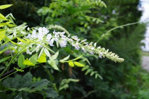 あれ??フジが咲いています!小さいながらもあちこちに花が。ここ数年、狂い咲きなのかこの時期にも見かけるようになりました。春はクマバチが盛んに飛び回っていましたが、今はチョウの仲間が蜜を求めて飛んでいます。