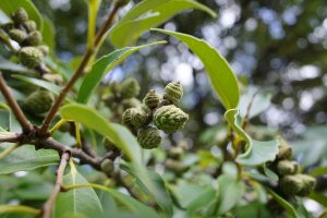 最後は帰真園を回りました。時雨亭の近くを歩いていると、木に何かついています。