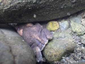 写真には収められませんでしたが、アマガエルのように器用にスイスイ泳いでいる様子も確認できました。
