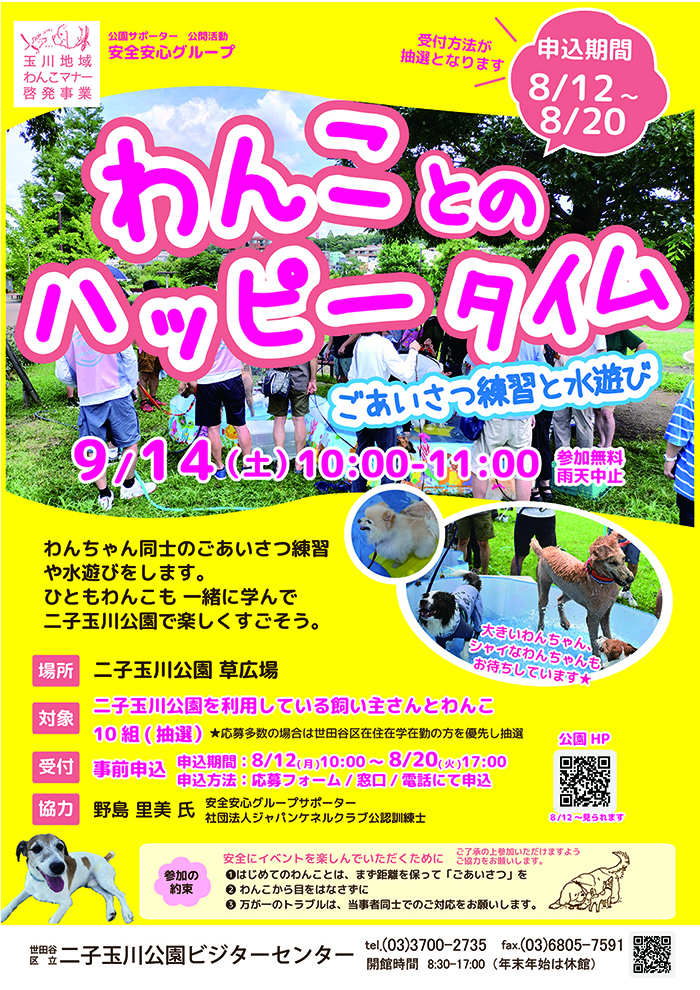 対象:二子玉川公園を日頃から利用している飼い主さんとわんこ