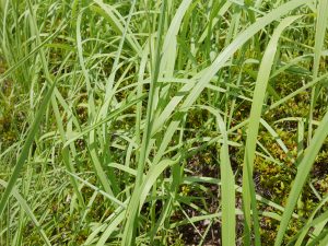 連れて行ってくれたのはビジターセンターを出て数歩、チガヤが生えた草地です。