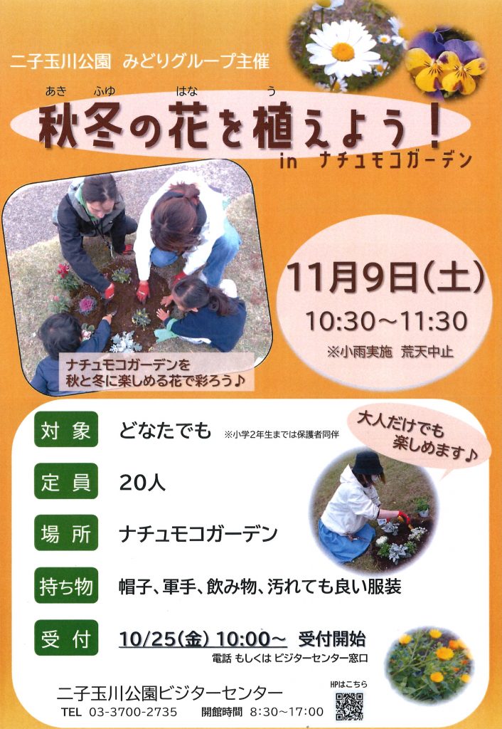 二子玉川公園ビジターセンター 電話03-3700-2735(8:30~17:00)