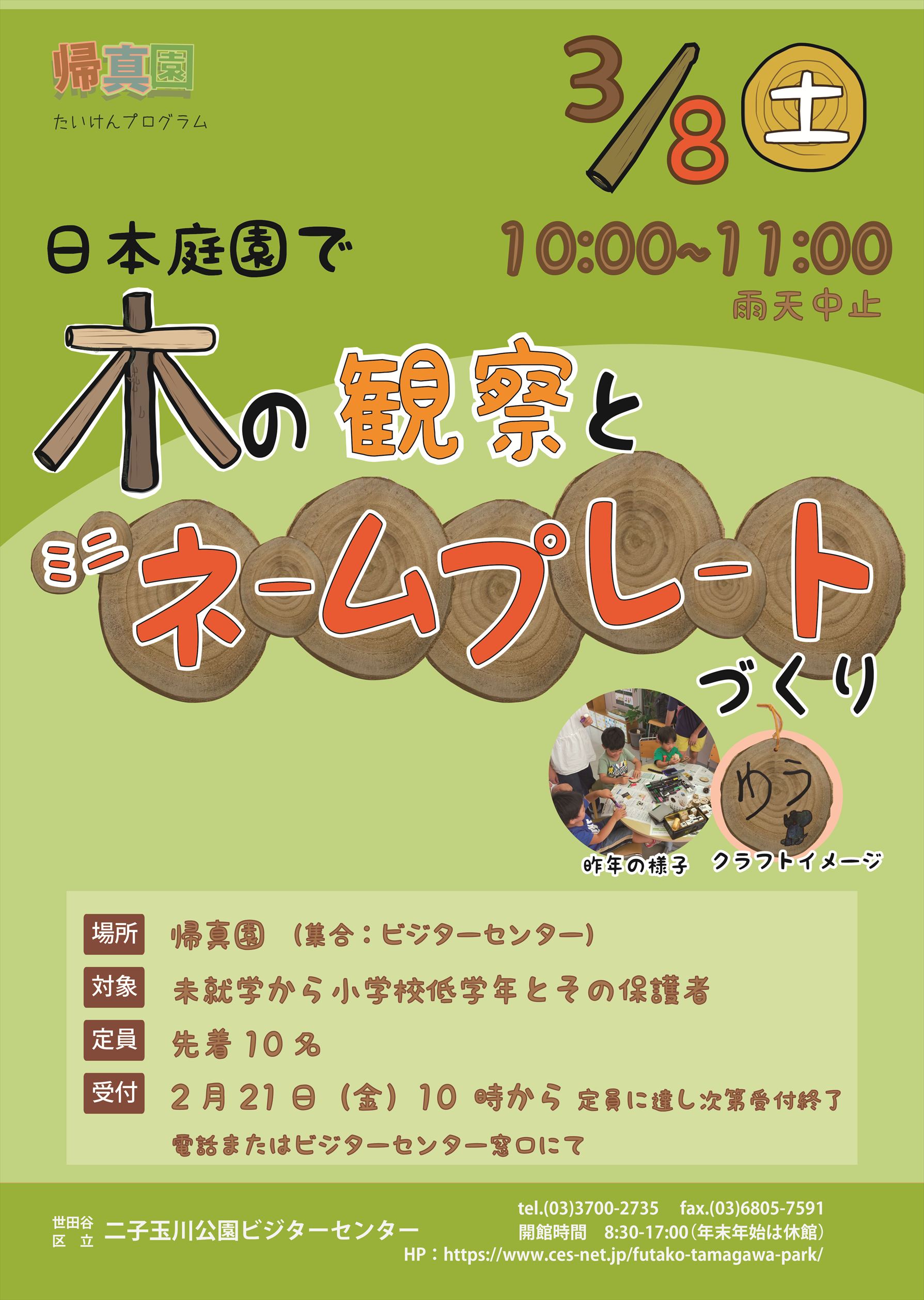 二子玉川公園ビジターセンター 電話03-3700-2735(8:30~17:00)