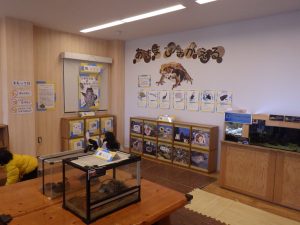 ふれあい休憩室では「あずまひきがえる展」を行っており、