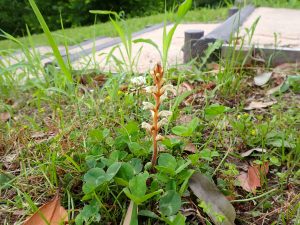 ニョロニョロ?いえ、ヤセウツボです Tweet この時期になると草地にこんな、ムーミンに出てくるニョロニョロのような生きものを見かけることがありませんか? こう見えても、植物なんです。 ちょっと不思議な形と色をしていますね。 自身では葉緑素を持たずに根を他の植物の根に食い込ませてそこから養分を吸収する寄生植物、ヤセウツボなんです。 よく寄生するのがマメ科だそうなので、写真でもシロツメクサの近くから生えていますね。 枯れるとこんな感じに茶色くなります。 二子玉川公園ではみどりの遊び場やサンクチュアリなどで今の時期に見られますよ。 (ゆっきー)