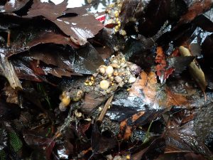 網で底を掬うと、食べられた植物の種がいっぱい入ります。