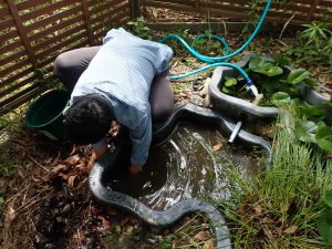 ビオトープの掃除は定期的に行っており、前回は繁茂したアオミドロの掃除を行いました。