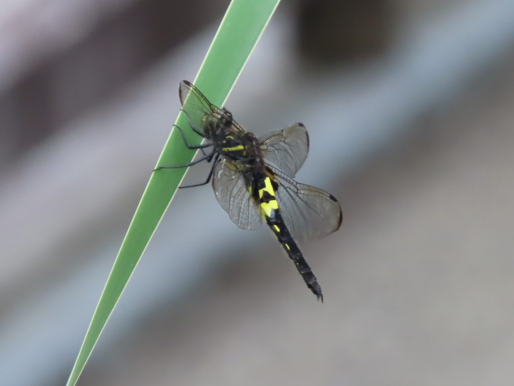 黒の体に黄色が映える「コシアキトンボ」のメス