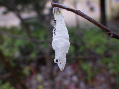 ↑チョウorガのぬけがら。少し前に、さなぎから巣立って行ったのでしょう。