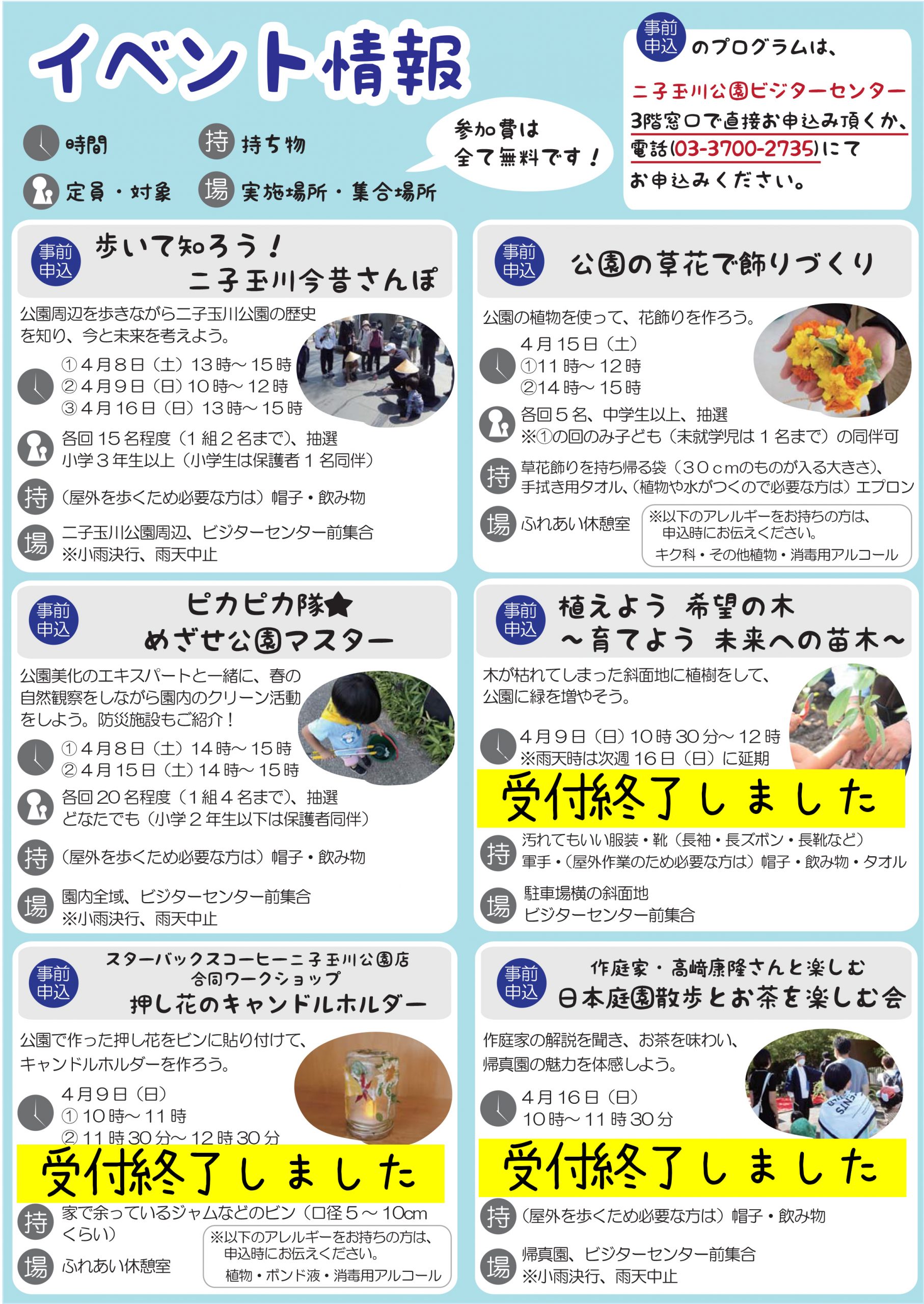 若干の空きがあります。参加希望の方はビジターセンターにお問い合わせください。